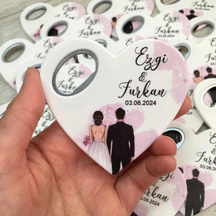 Apribottiglie Personalizzato a Forma di Cuore con Magnete, Regalo Originale per Matrimoni, Compleanni e Feste, Souvenir in Plastica
