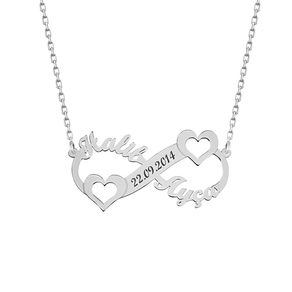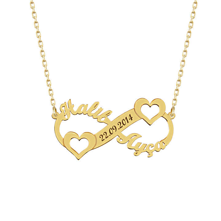 Collana Personalizzata a Forma di Cuore con Due Nomi e Infinito, Incisione Data e Numero, Gioiello in Acciaio Inossidabile Dorato per Donna, Regalo con Nome Inciso