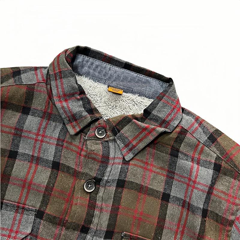 Camicia di flanella da uomo di lusso pesante personalizzata con bottone in pile spessa e calda giacca di flanella oversize con Logo frontale