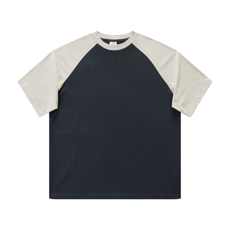T-shirt Oversize Personalizzate con Maniche Raglan in Cotone 100%, Stile Streetwear con Contrasto di Colori e Stampa a Rilievo