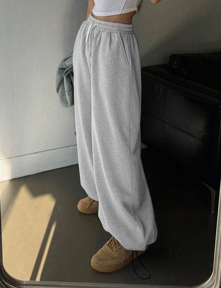 Pantaloni da jogging in pile personalizzati Hesayep all'ingrosso per donna, caldi invernali, a gamba larga, con coulisse e polsini, modello baggy