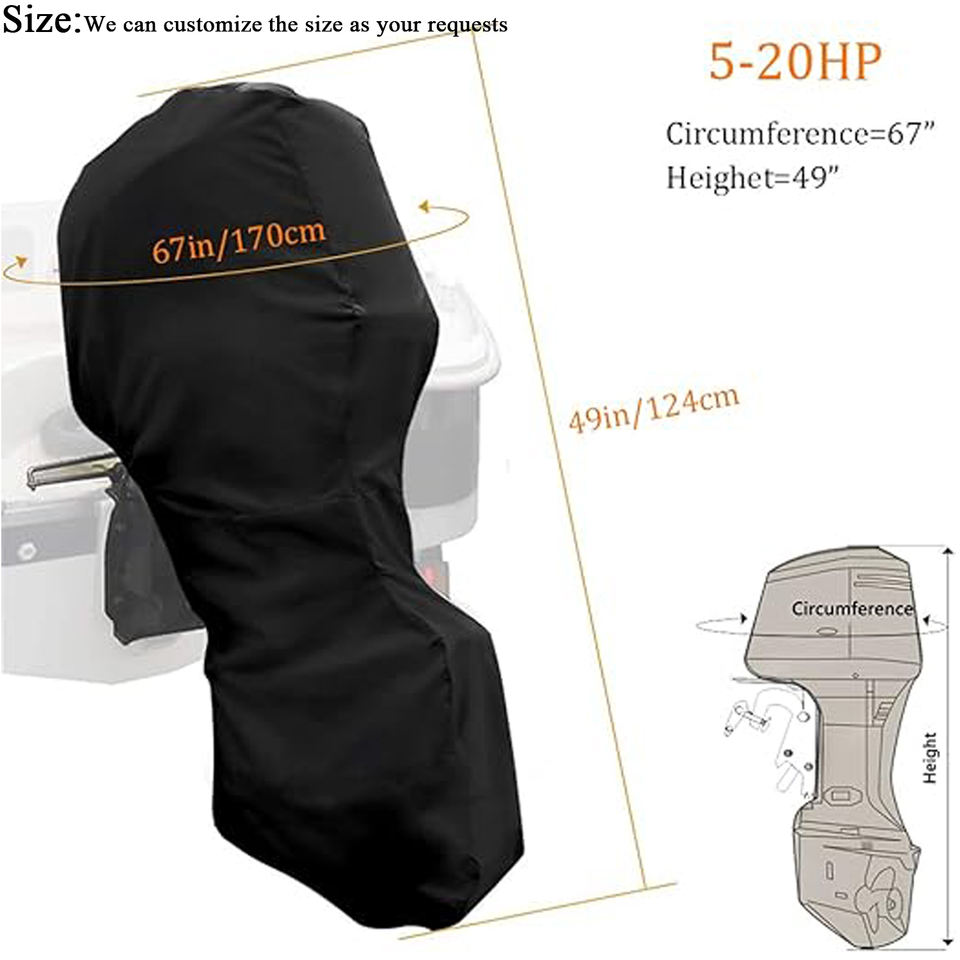 Custom ad alta densità 600D/900D dimensione universale della barca copertura del motore del tessuto del motore del cofano del motore completamente fuoribordo con cinghia antivento