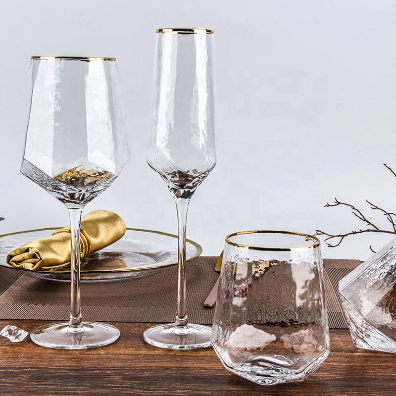 gold rim red wine goblet