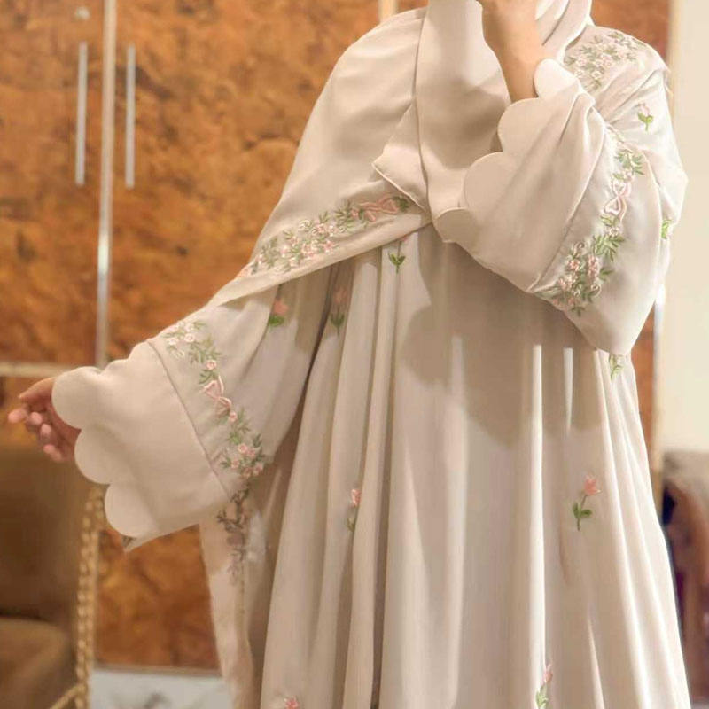 Set Due Pezzi Personalizzato di Alta Qualità per Donne, Abaya Musulmana Modesta con Ricami