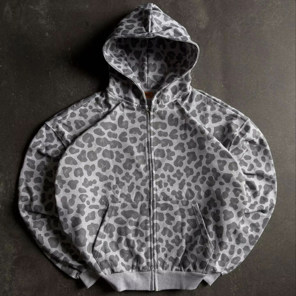 Felpa con cappuccio da uomo in cotone 100% squadrato personalizzato di alta qualità 400gsm peso pesante leopardo con stampa grafica ghepardo