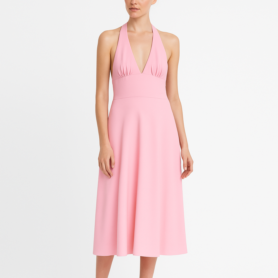 Abito Midi da Donna Personalizzato di Alta Qualità, Casual e Classico, Senza Maniche, con Collo Halter, Scollo a V Profondo e Schiena Scoperta