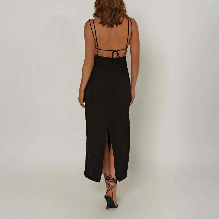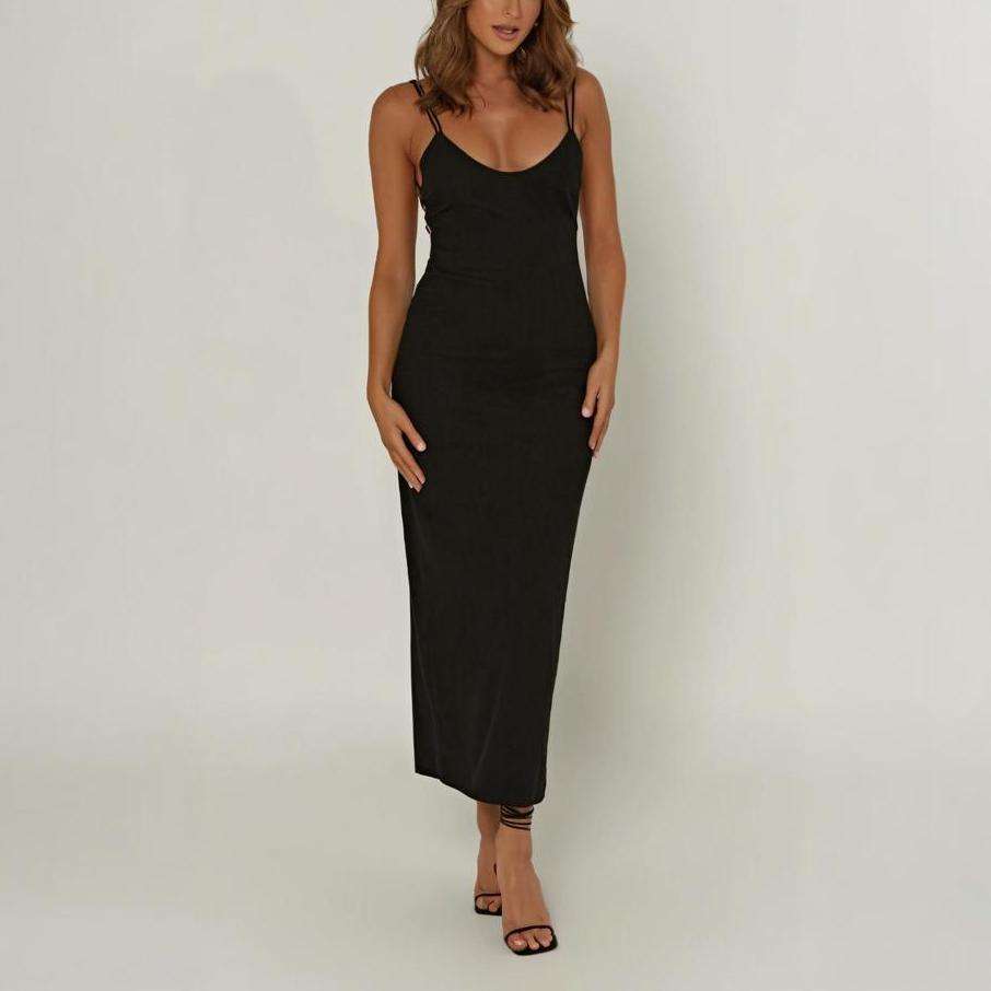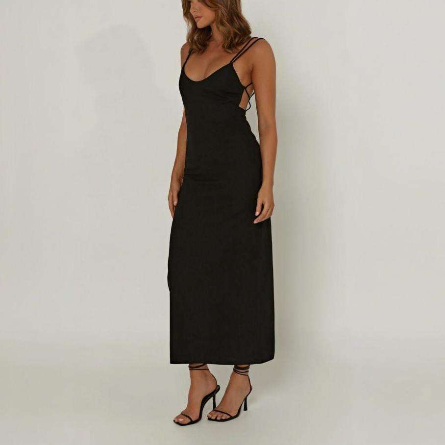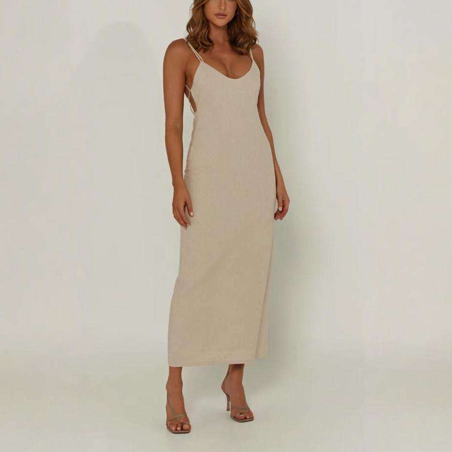 Custom High Quality Casual Maxi Bodycon Sleeveless Backless Slit Solid Color Black Women Linen Summer Slip Halter Dress Ladies