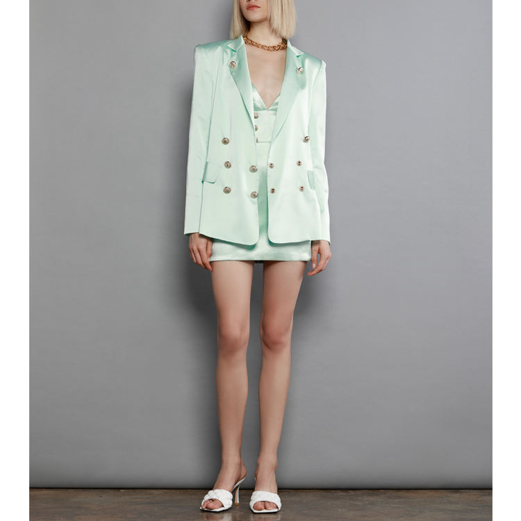 Su misura di Alta Qualità Classico Blazers Doppio-Petto Raso di Seta Pulsante Verso Il Basso Da Sera Del Partito di Lavoro Vestito Convenzionale Per Le Donne