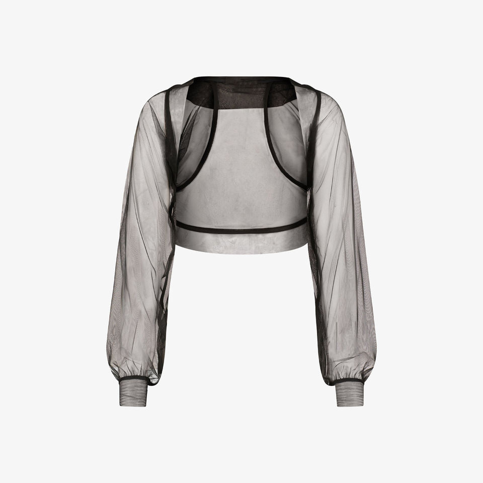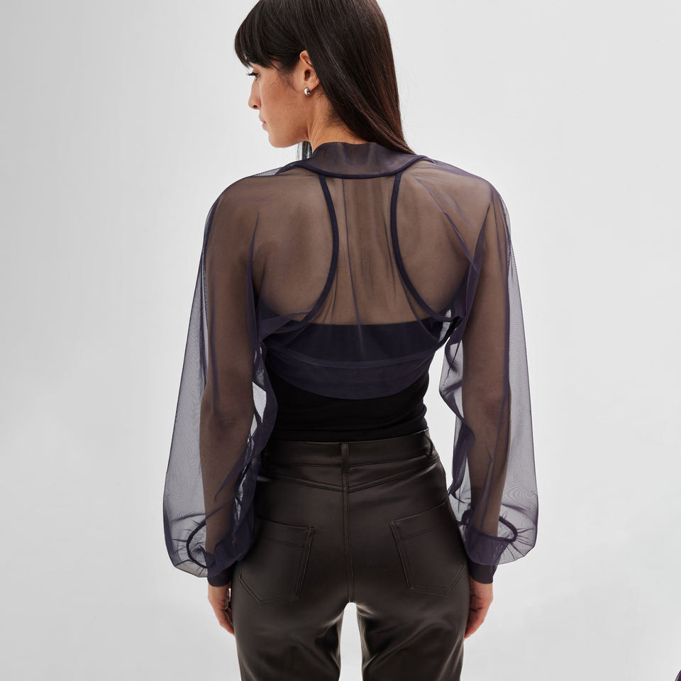 Custom High Quality Fashion Full Sleeve Mesh Bolero Shrug Sexy Sheer Knitted Slim Fit Front Women Open Front Short Mesh Shrug