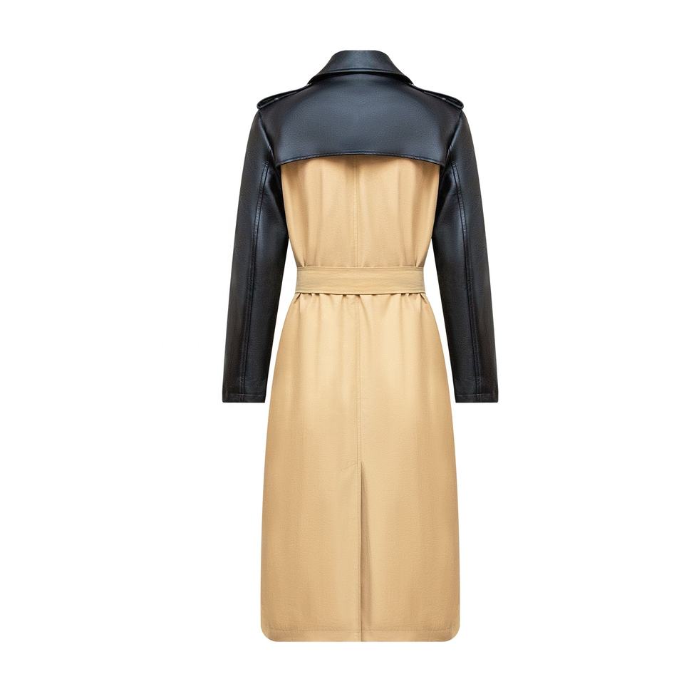 Trench personalizzato di alta qualità da donna lungo di lusso da donna design all'ingrosso Trench unico in pelle Patchwork