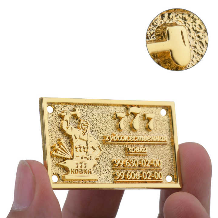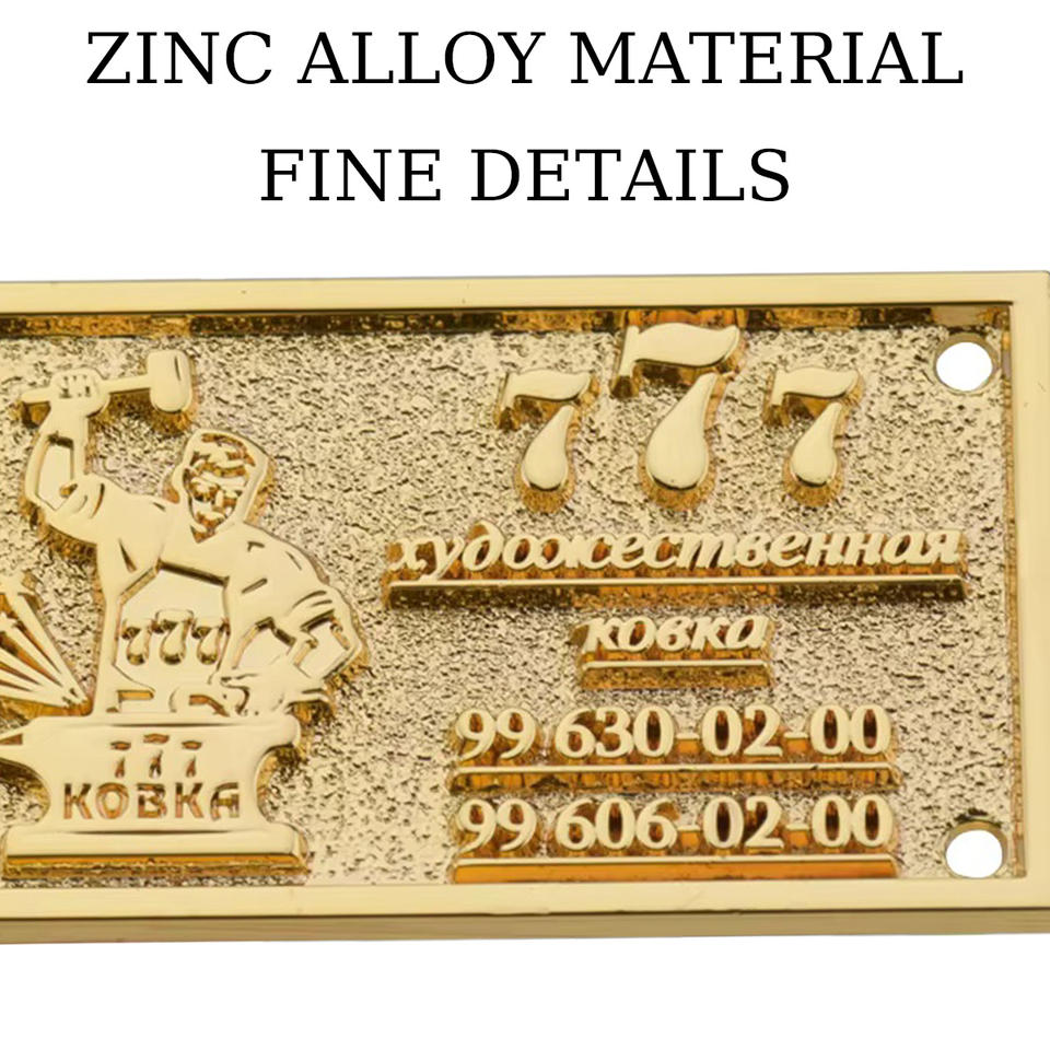 Targhetta in Lega di Zinco Dorata Personalizzata di Alta Qualità, Lunga Durata, 100% Controllata o Testata, Adesivo con Logo in Rilievo