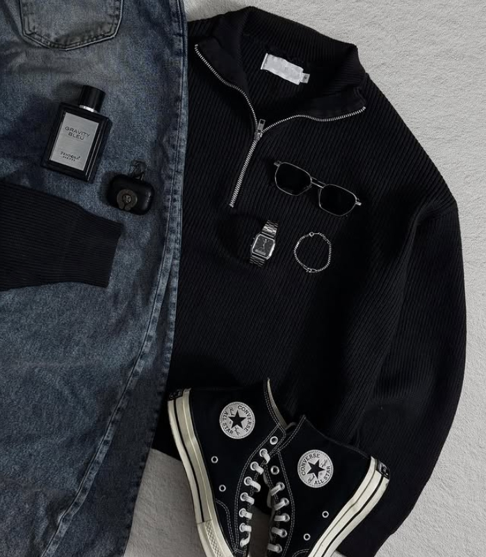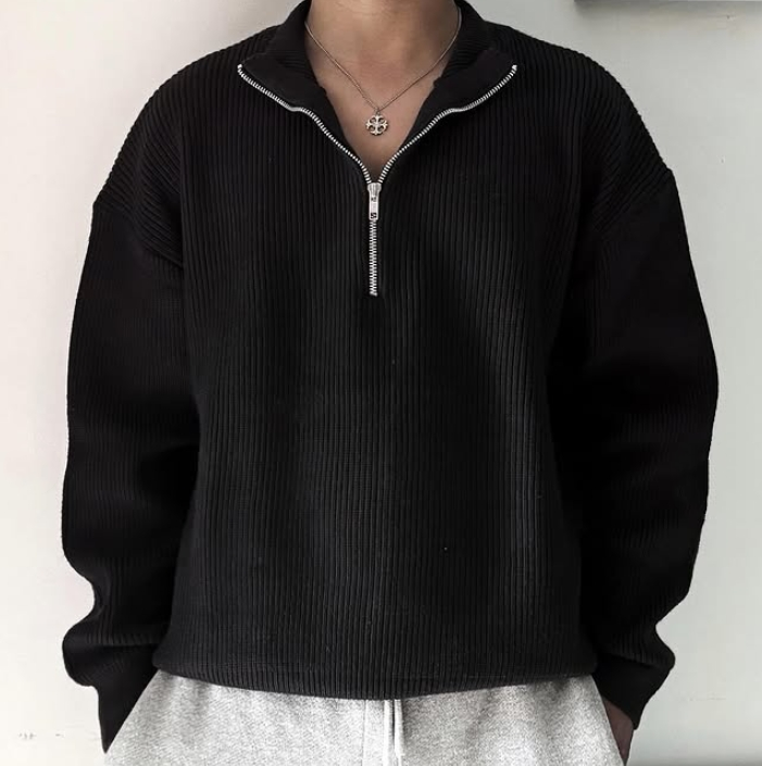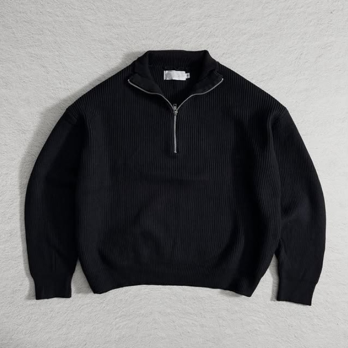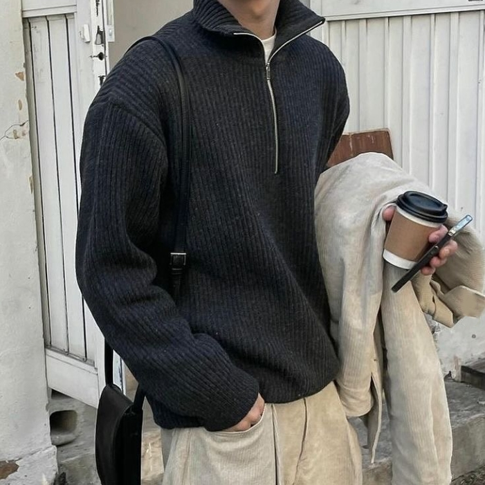 Maglione da Uomo Personalizzato di Alta Qualità a Collo Alto con Zip e Maniche Lunghe in Maglia Intrecciata