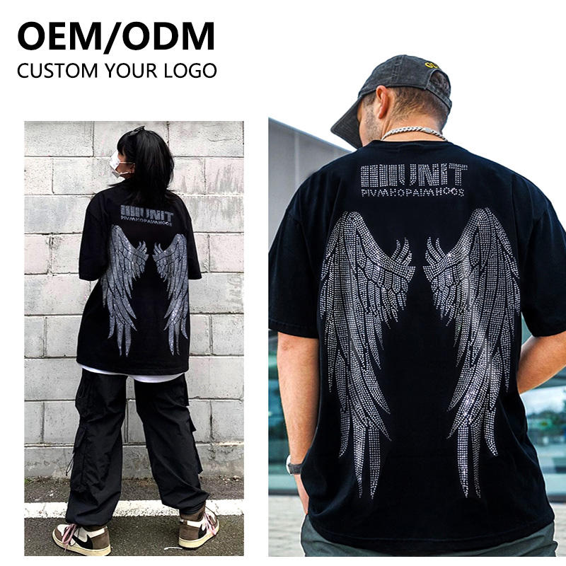 T-Shirt da Uomo Personalizzata a Maniche Corte in 100% Cotone di Alta Qualità con Stampa Grafica e Logo in Strass Brillanti Termoadesivi