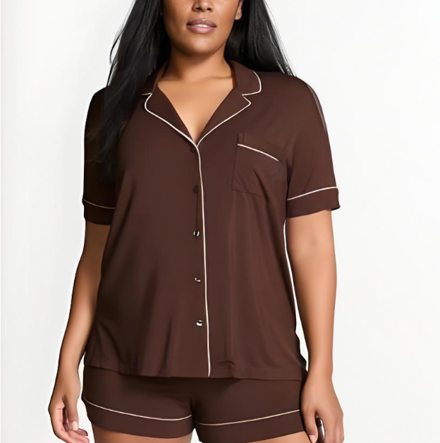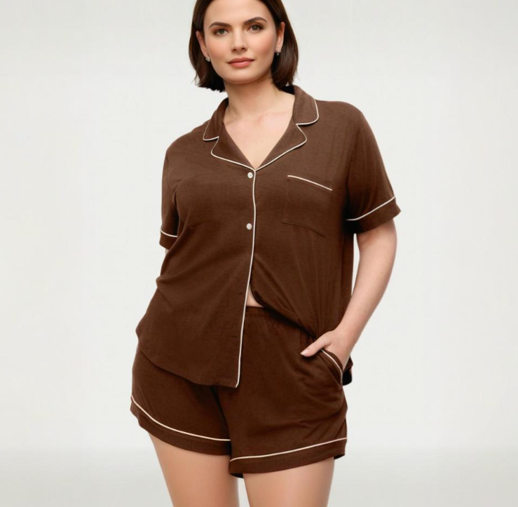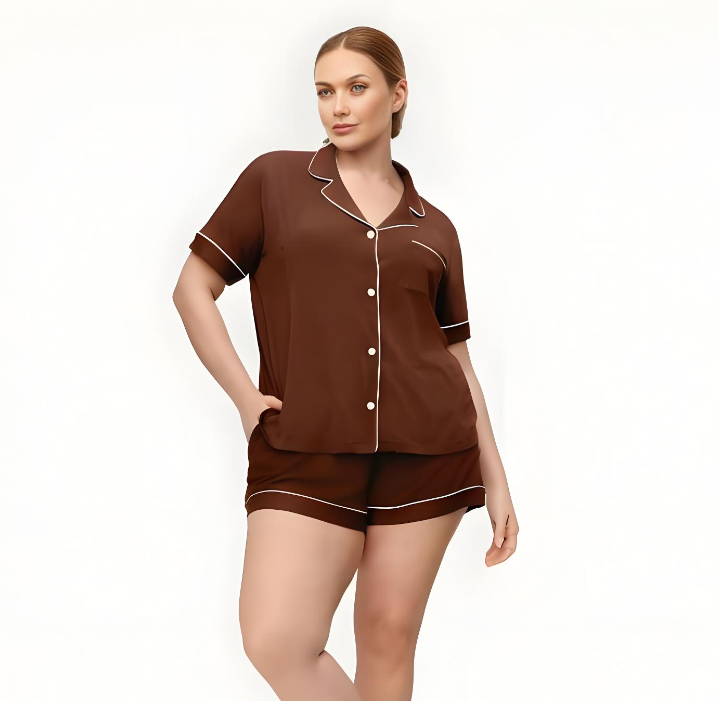 Pigiama Estivo da Donna Personalizzato di Alta Qualità in Modal, Maniche Corte, Bottoni, 2 Pezzi, Taglie Forti, in Cotone Bambù