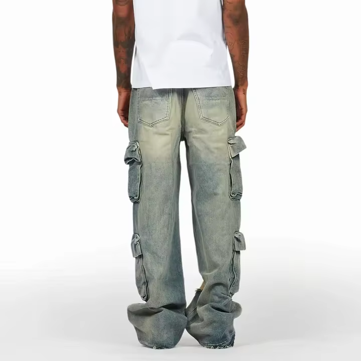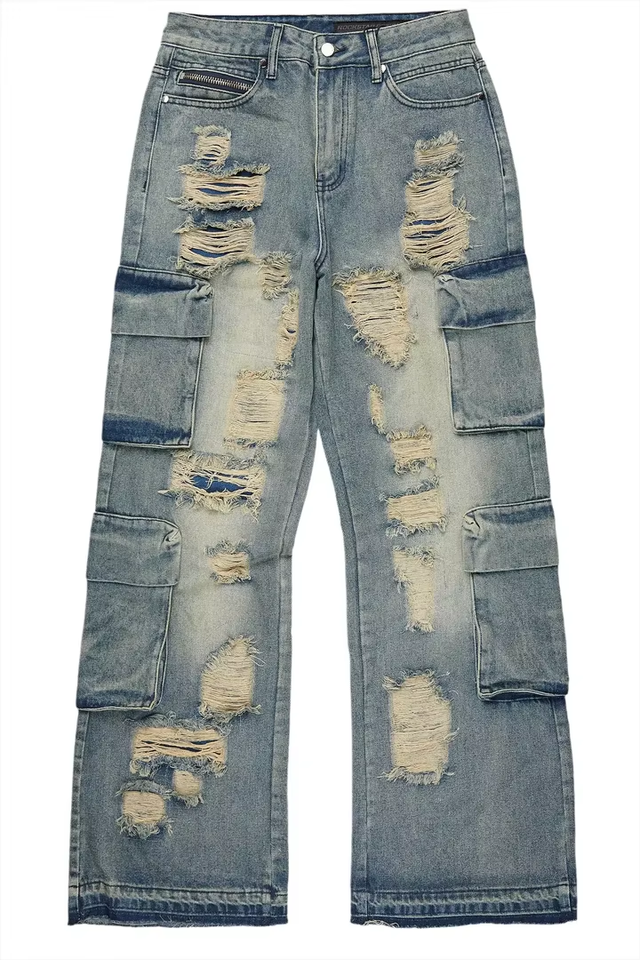 Jeans Personalizzati di Alta Qualità in Stile Vintage con Patchwork per Uomo, Taglie Grandi, Tasche Ampie, Gamba Larga, Decorazione con Strappi