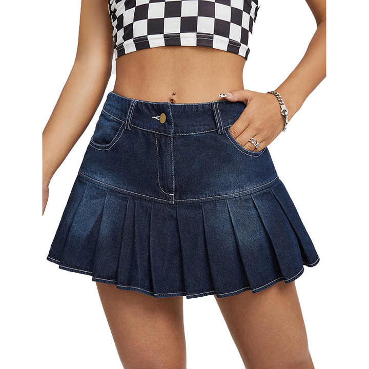 Mini gonna a pieghe a vita alta personalizzata per adulti Casual modello solido con tasche traspiranti abbigliamento femminile
