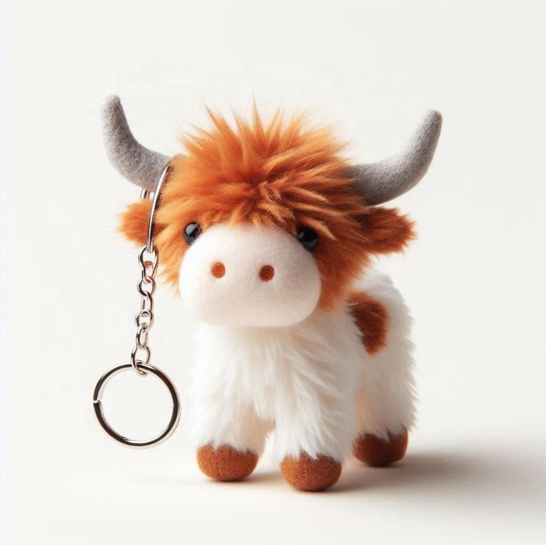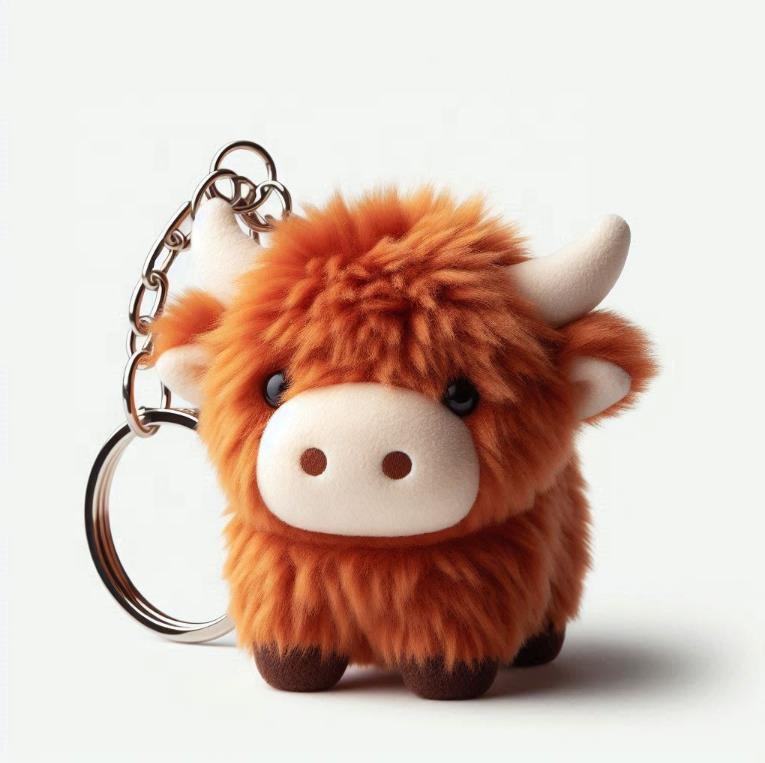 Custom Highland Cow Stuffed Animal Toys Cute Cattle Keychain Plush Toy Highland Cow Pendant