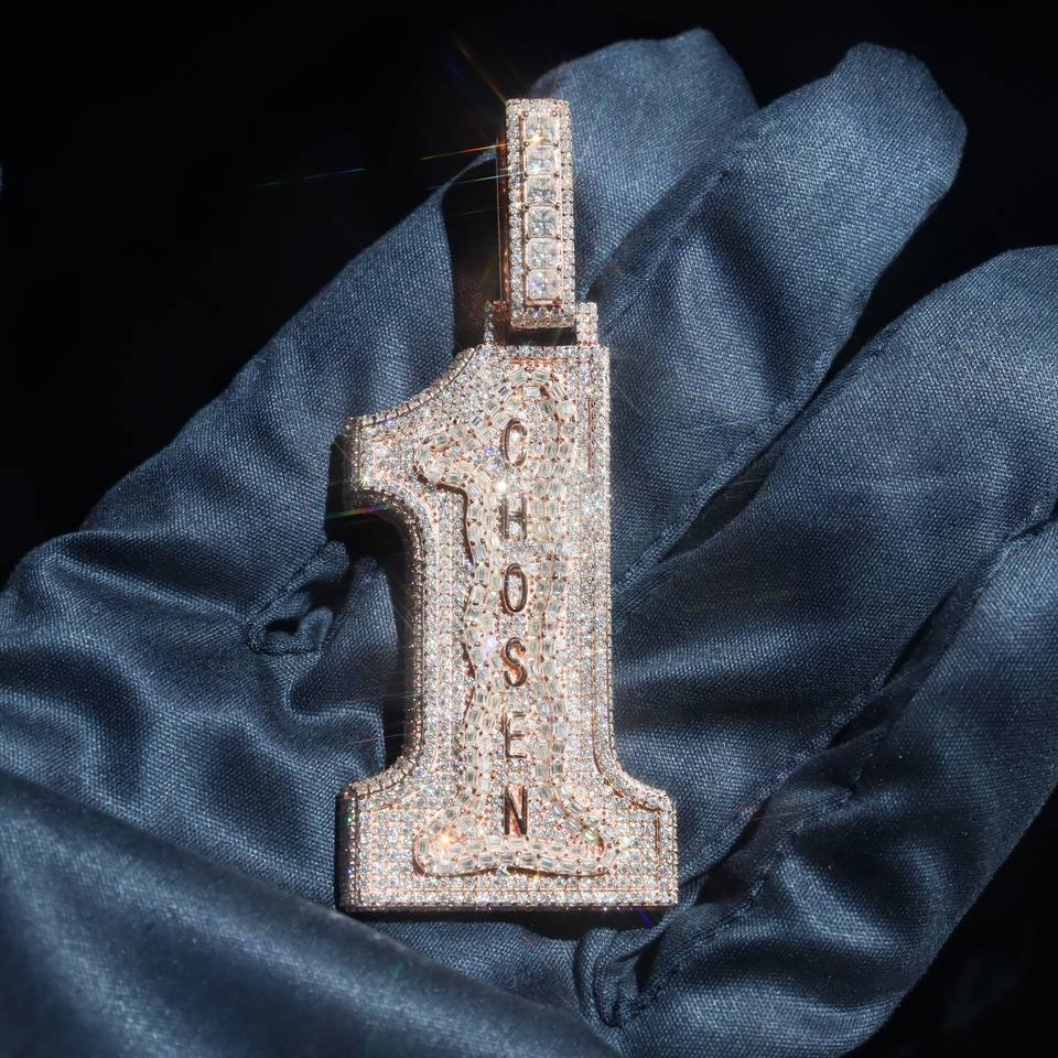 Ciondolo Personalizzato Stile Hip Hop con Iniziale e Numero 1 in Argento Sterling S925 con Moissanite VVS Colore D per Uomo e Donna con Certificato