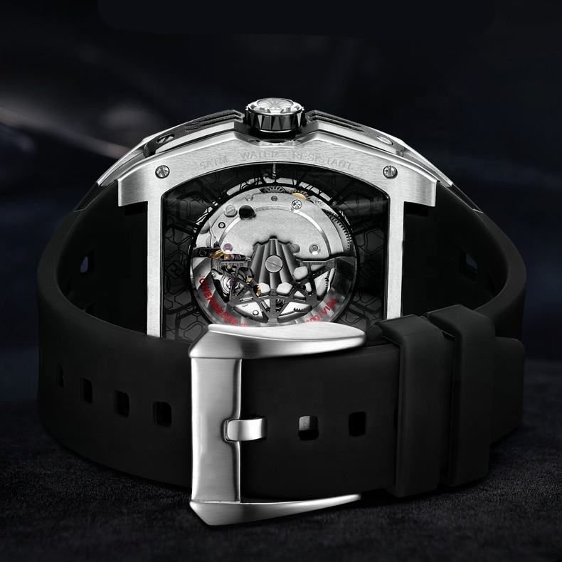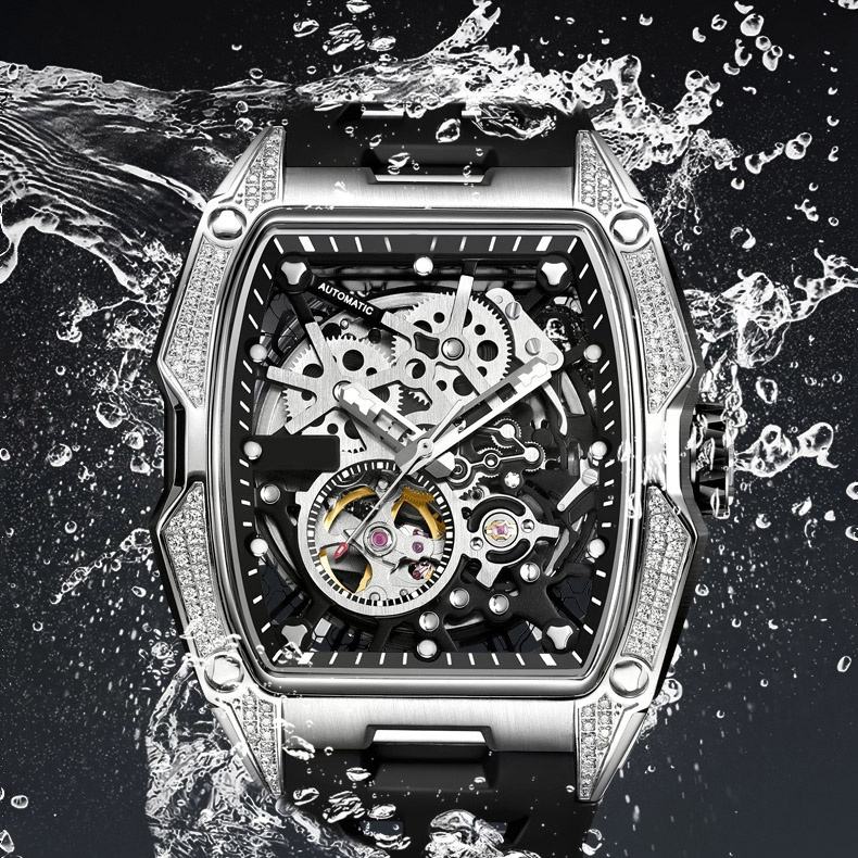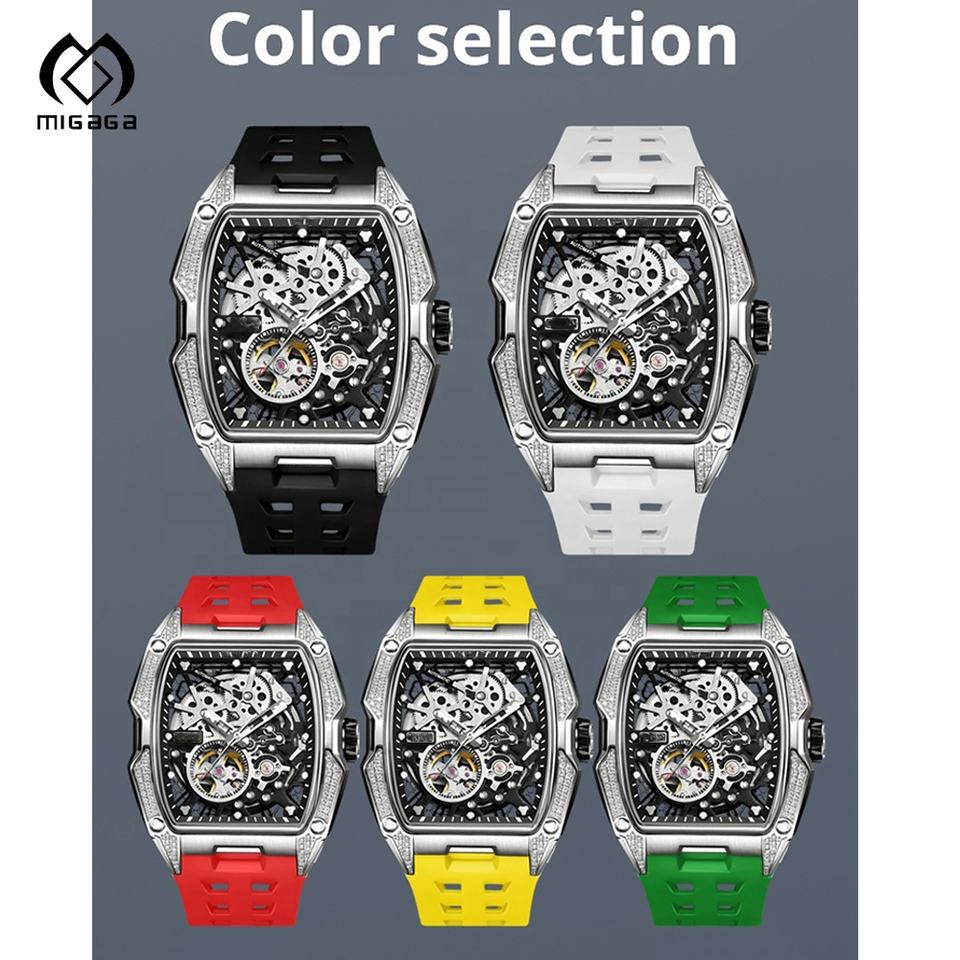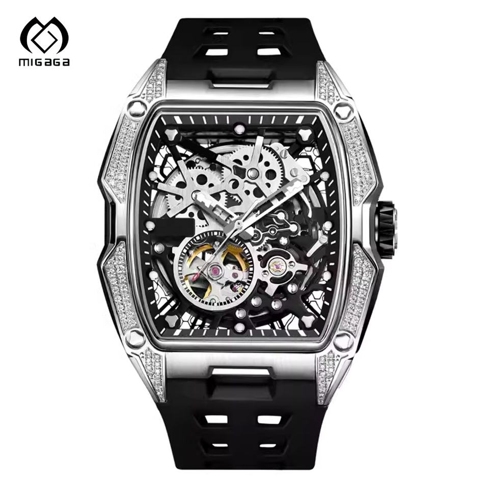 Orologi Meccanici Automatici da Uomo Personalizzati di Lusso Stile Hip Hop con Quadrante in Silicone Gomma e Acciaio e Diamanti Moissanite Unisex