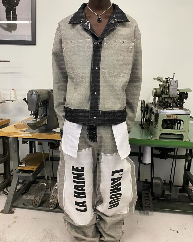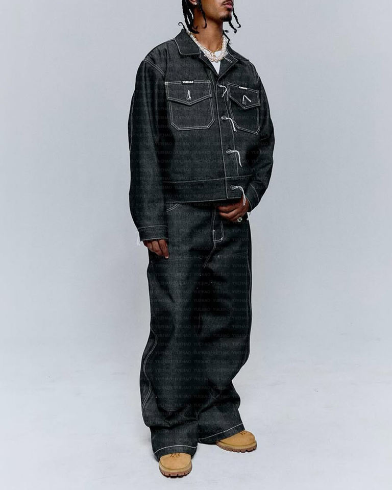 Completo Reversibile Personalizzato da Uomo Stile Hip Hop in Cotone Oversize Composto da Giacca e Pantaloni in Denim Selvedge Giapponese Grezzo