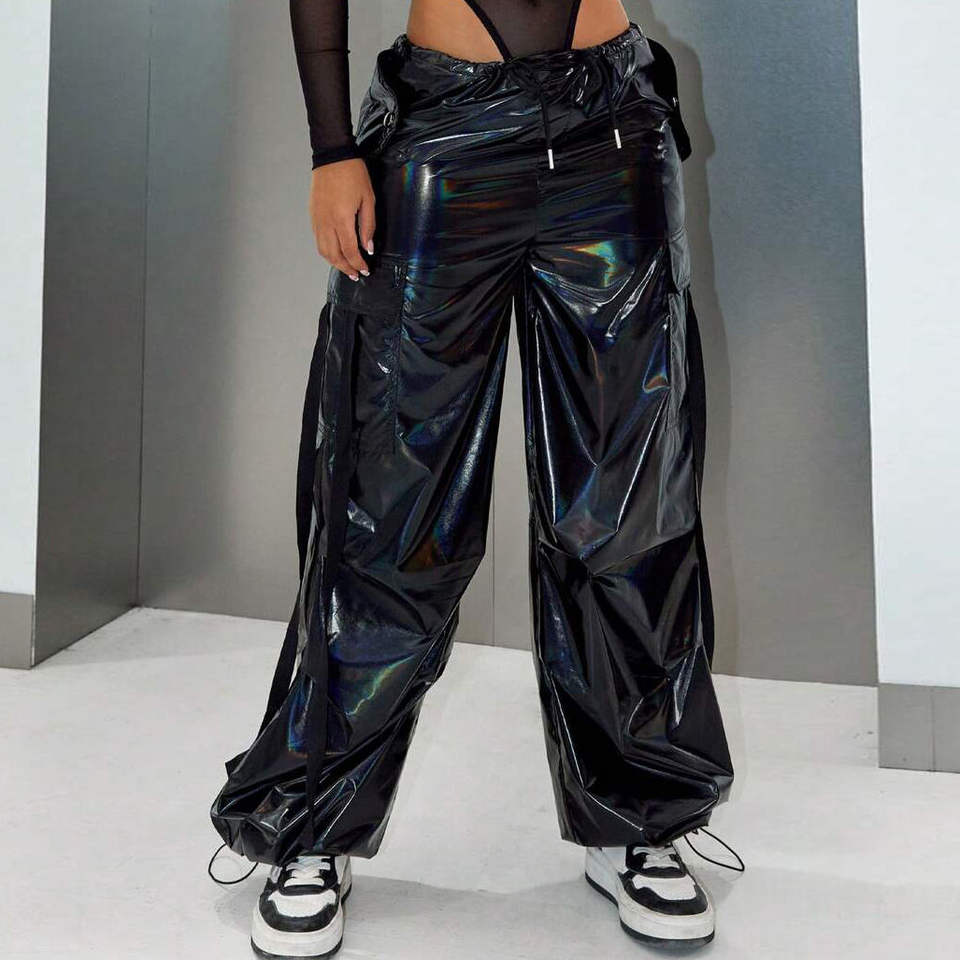 Pantaloni Cargo Olografici Riflettenti Personalizzati per Donne, Pantaloni Hip Hop, Abbigliamento Femminile