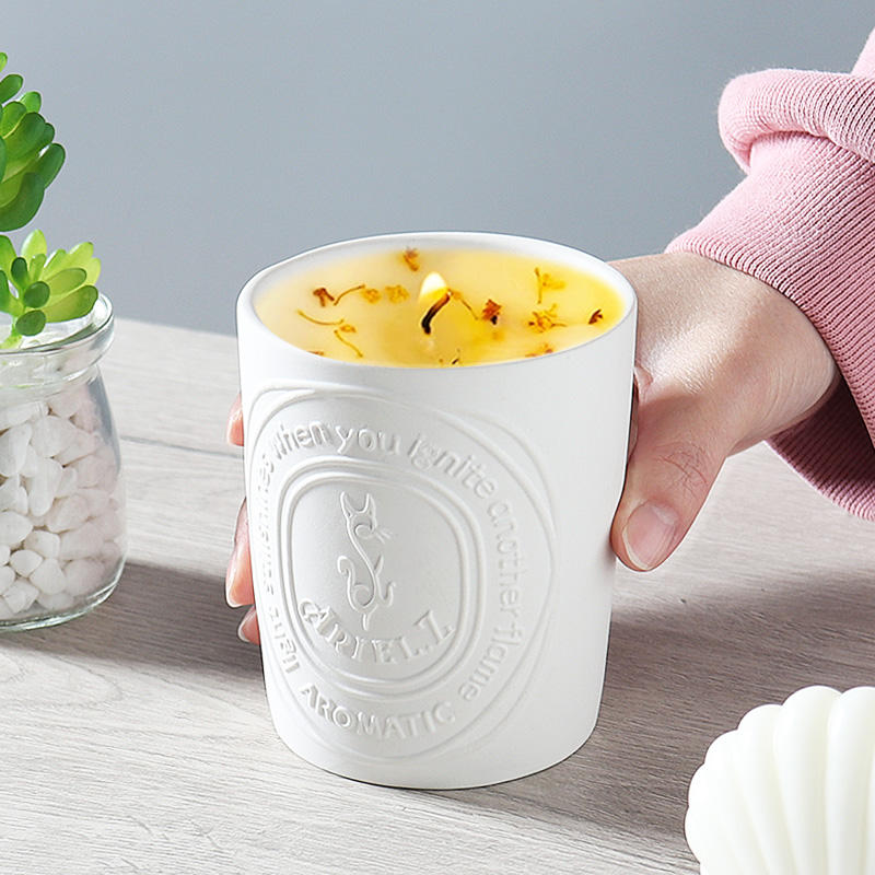 Contenitori per candele profumate goffrati personalizzati per decorazione di caffetterie domestiche, contenitore vuoto in ceramica opaca per candele