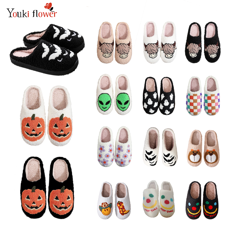 Custom Home Cotton Fuzzy Fruit Animal Leopard Print Christmas slippers Halloween slippers for Women Men