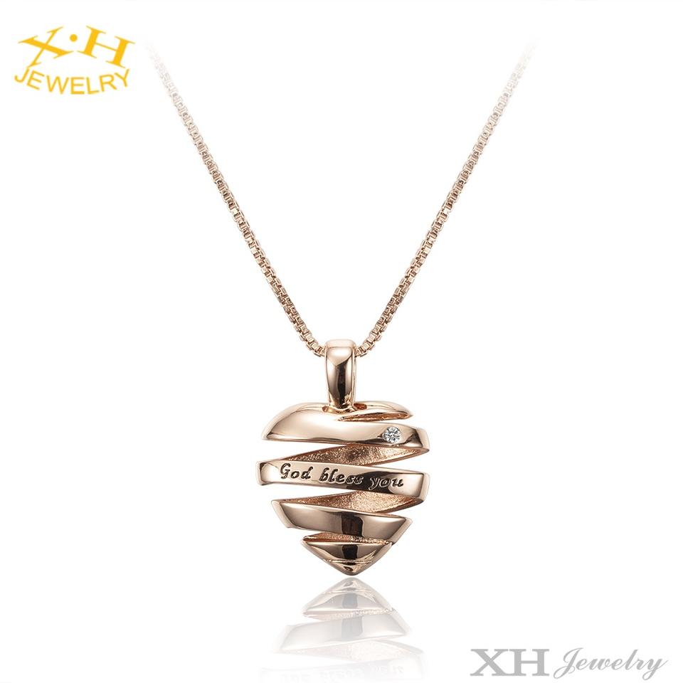 Vendita calda personalizzata in ottone vortice a forma di cuore inciso amore dio vi benedica ciondolo ciondolo collana per le donne San Valentino regalo