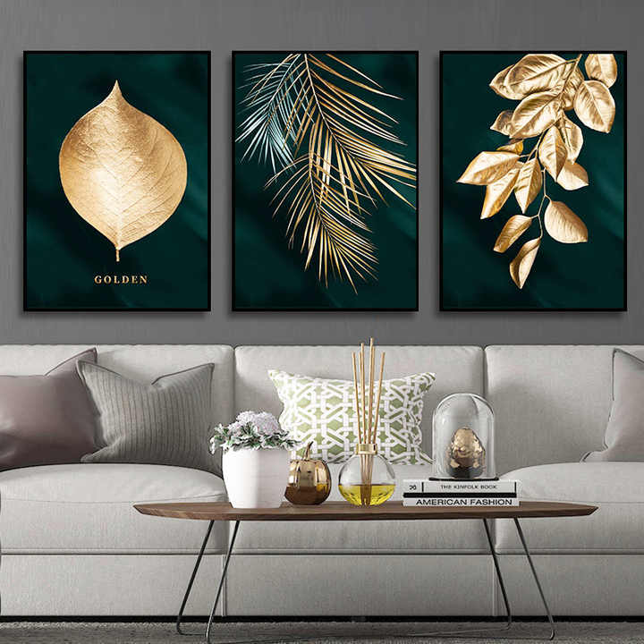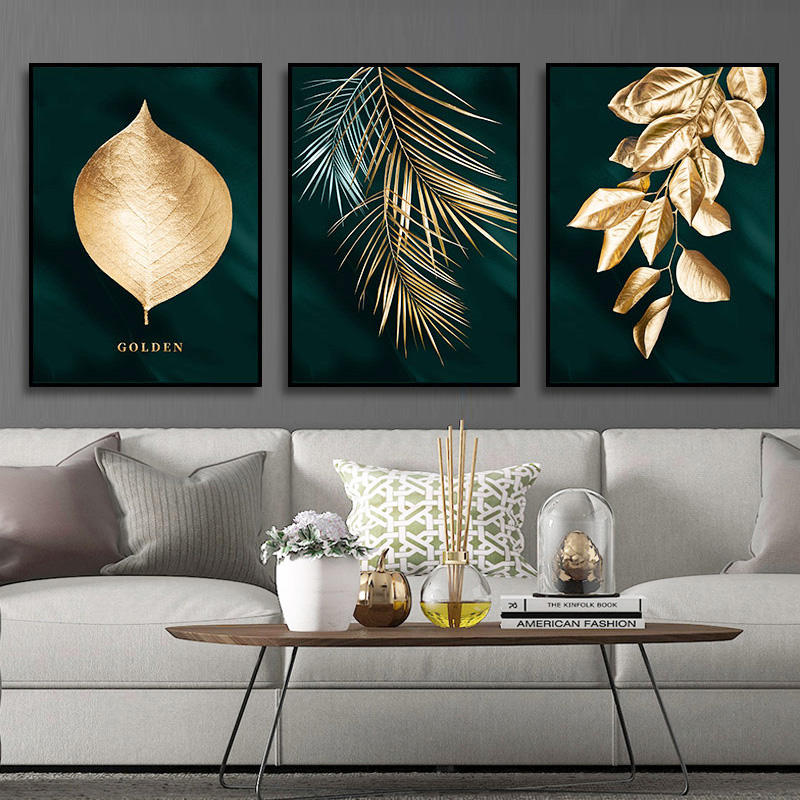 Arte grafica personalizzata Hotel Design oro foglie immagine parete vetro europeo appesa da parete astratte ultimi disegni arte natura morta pittura