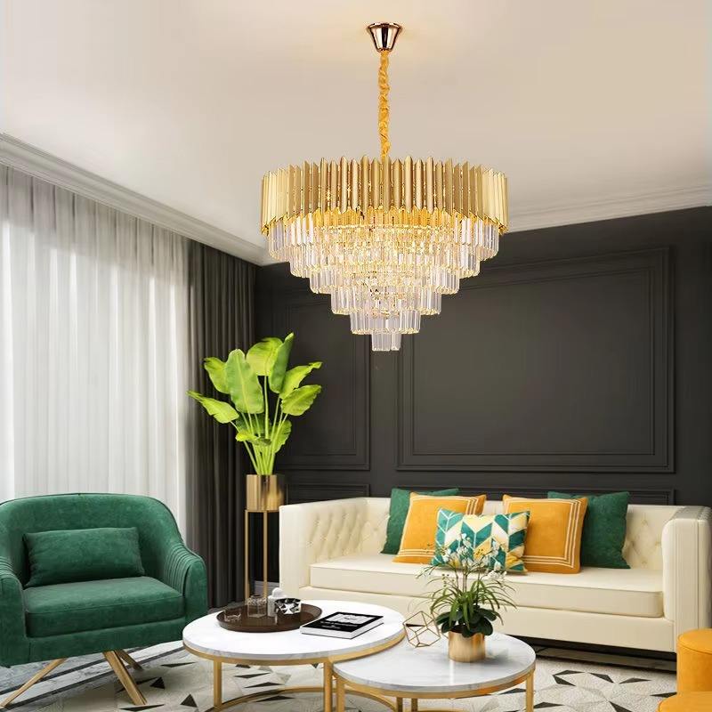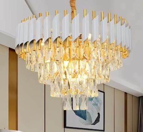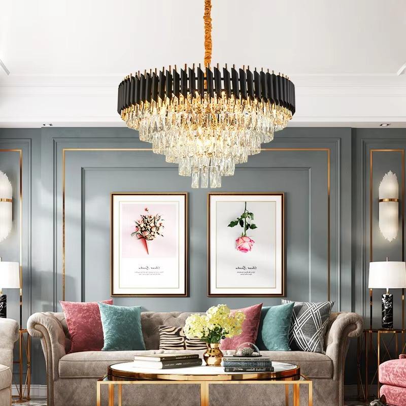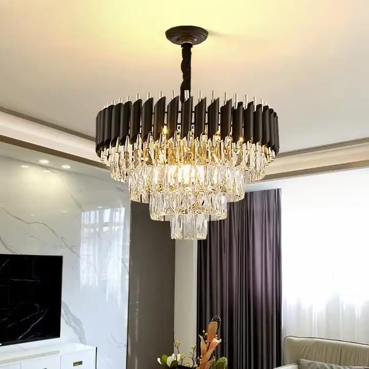 Lampadario Moderno Nordico Personalizzato per Hotel, Lussuoso Pendente Centrale in Cristallo K9 Oro+Nero, Luce Dimmerabile per Soggiorno