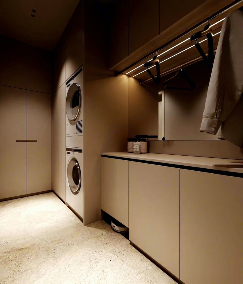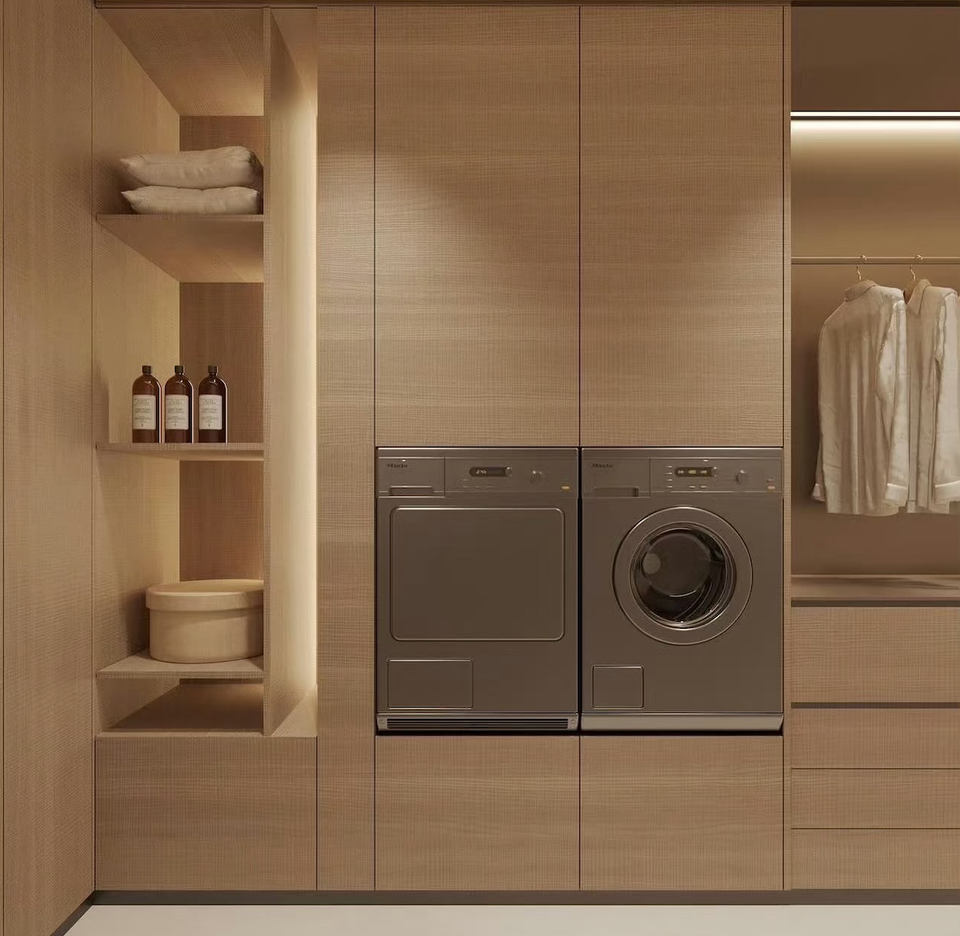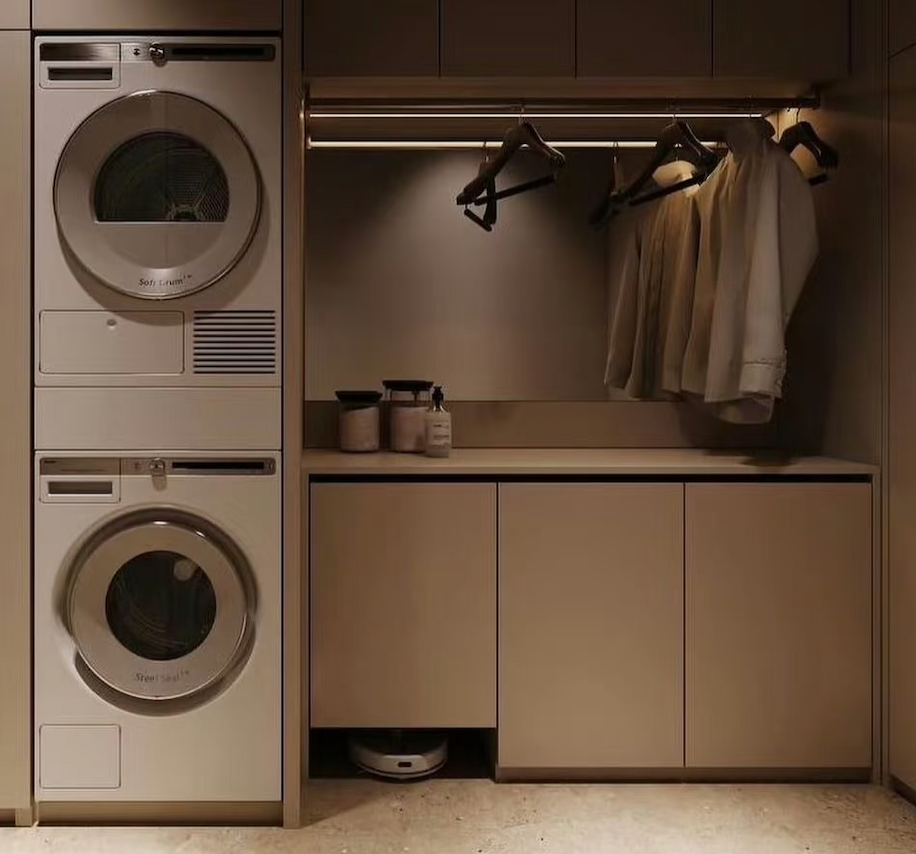 Mobiletto Lavanderia Integrato a Parete con Asta Appendiabiti per Organizzazione e Stoccaggio nella Lavanderia