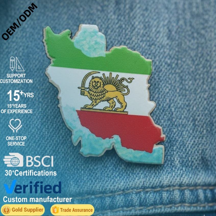 Spilla Personalizzata con Mappa dell'Iran, Distintivo in Metallo Smaltato, Leone, Sole, Bandiera della Persia, Regalo, Souvenir, Collezione, Promozione