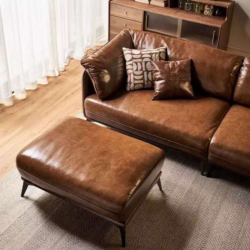 Custom Italian Leather Sofa Luxury Minimalist 3-4 Seater Set Hotel Living Room Complete Home Furnishings