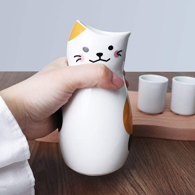 Tazze di bottiglia di vino di ceramica del regalo creativo di progettazione del gatto di stile giapponese su ordinazione che servono il Set di Sake della porcellana