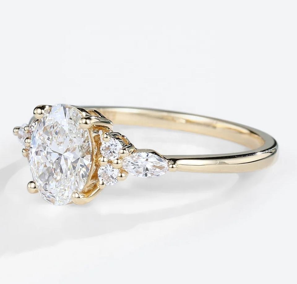 Gioielli personalizzati gigi GIA Report 14K 18K oro massiccio 6*8mm taglio ovale D-colore VVS anello di fidanzamento con diamante coltivato da laboratorio
