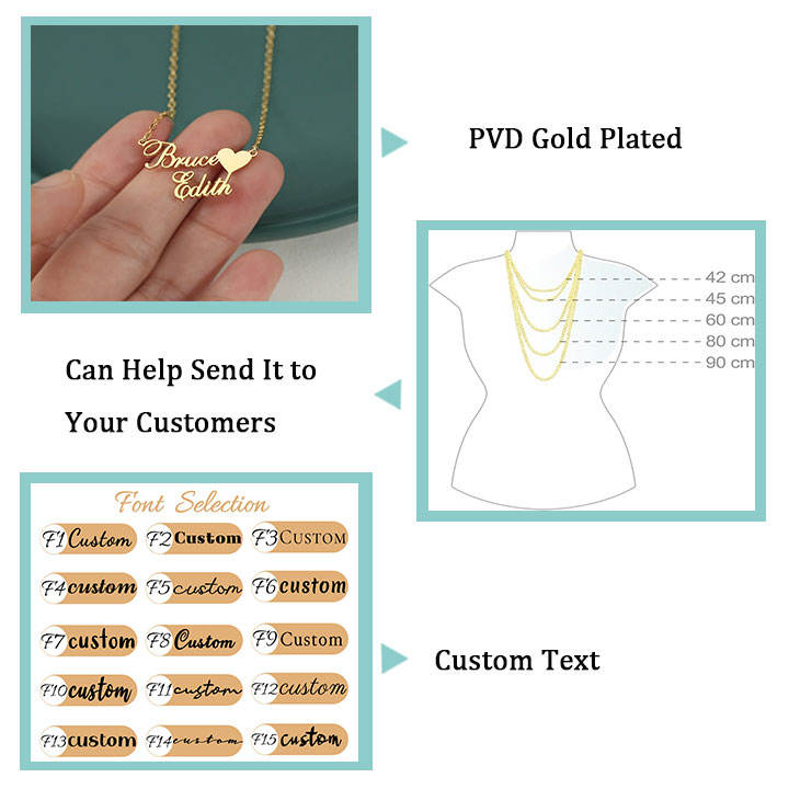 Gioielli Personalizzati per Donne, Collana con Doppio Nome a Forma di Cuore, Placcata in Oro 18K, Acciaio Inossidabile, Regalo di Natale per Fidanzata