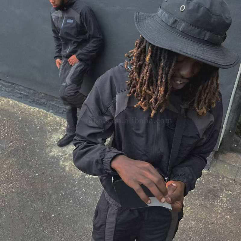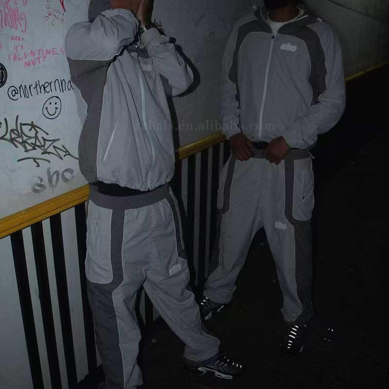 Tuta da Jogging Personalizzata in Due Pezzi, Completo Sportivo in Nylon Leggero con Giacca con Zip e Felpa con Cappuccio Antivento per Uomo