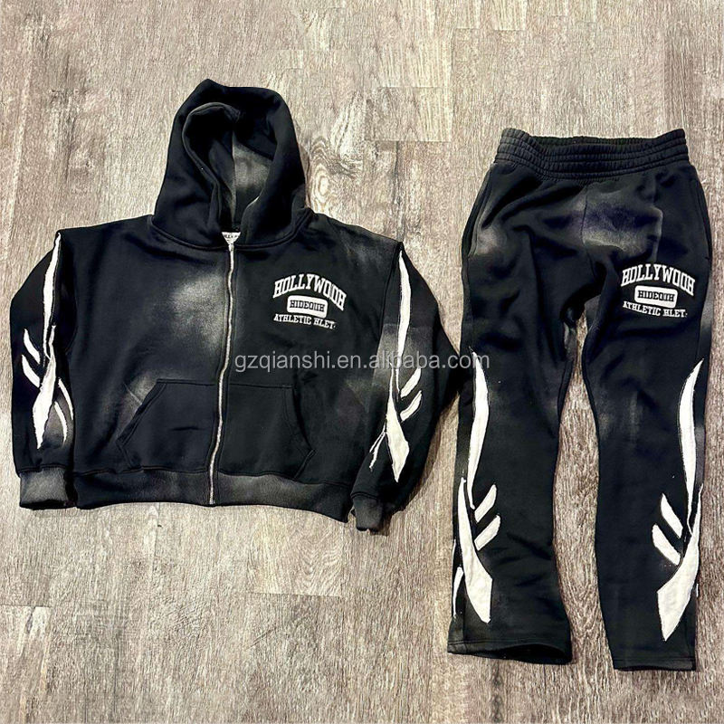 Pantaloni della tuta da Jogging personalizzati e Set di felpa Casual Unisex 2 pezzi Set di tute e pantaloni impilati con Zip