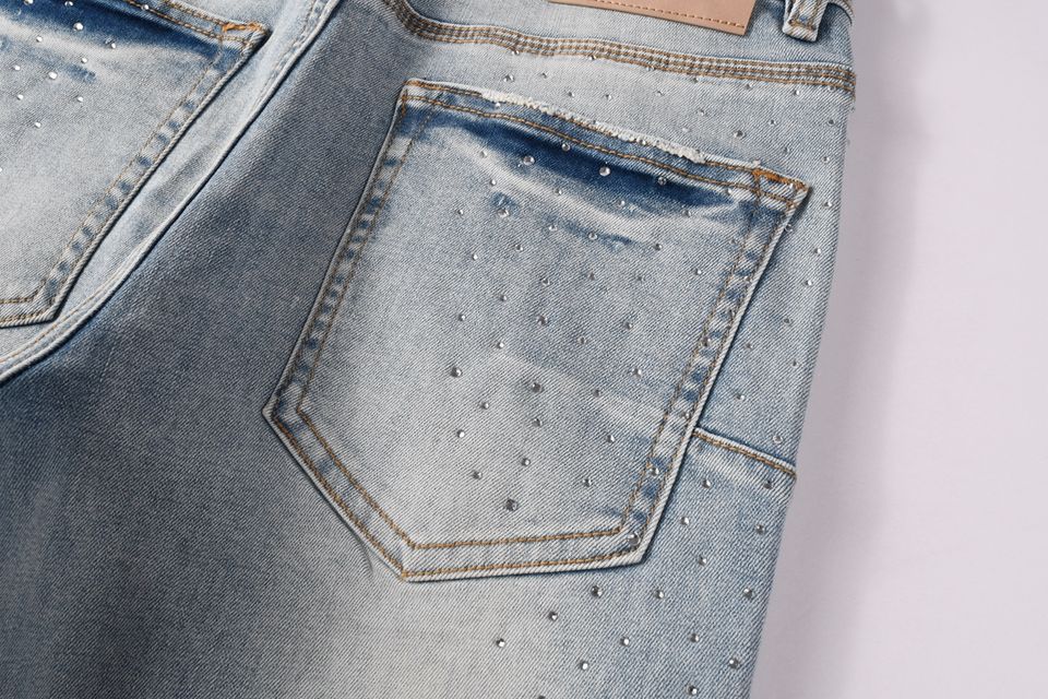 Jorts Personalizzati da Uomo, Jeans in Denim Lavato e Strappato, Jeans Slim Fit Leggeri con Strass