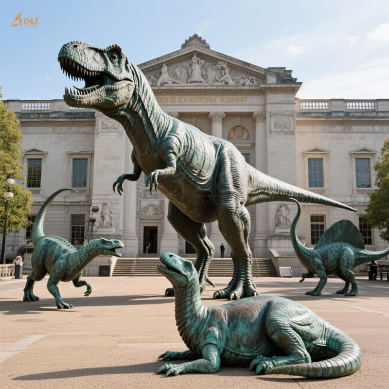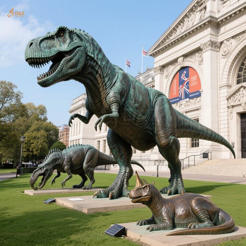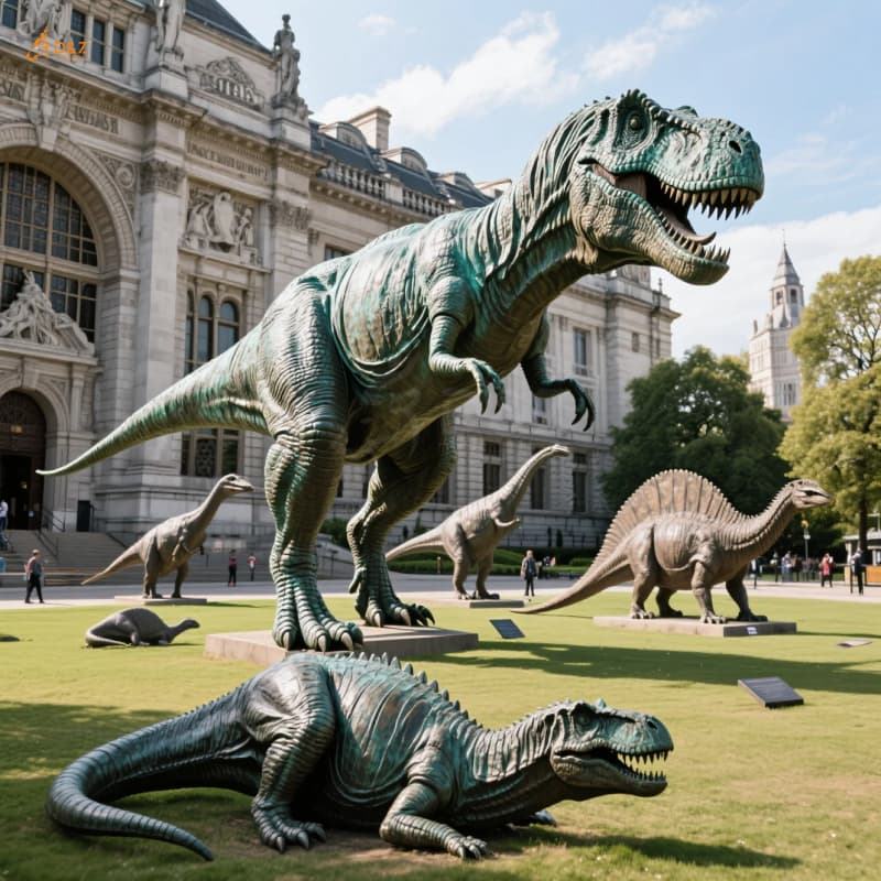 Custom Jurassic Fossil Decor Metal Brass Cast Dinosaur Statue Life Size Bronze Dinosaur Sculpture for Natural History Museum
