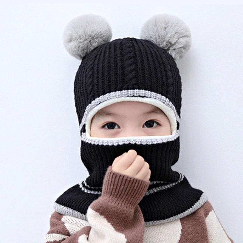 Packaging Details:Custom Kids Child Girls Boys Ring Collar Face Cover Double Ear Hairballs Warm cap Baby ski mask Hat Knitted Winter Balaclava