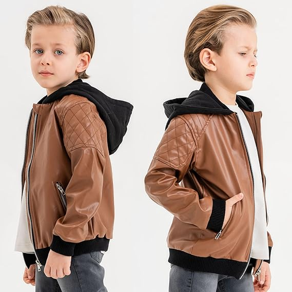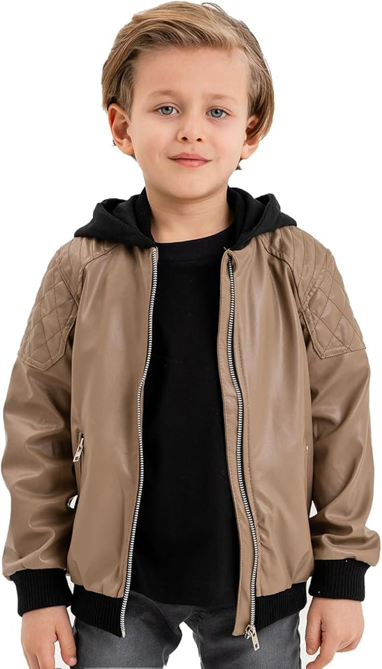 Giacca di pelle personalizzata per bambini per ragazzi con Zip Outwear alla moda da 2 a 14 anni primavera e inverno stile motociclistico per l'autunno