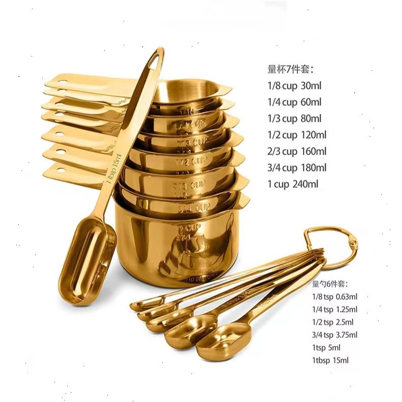 Set Completo di Misurini e Cucchiai in Acciaio Inox Oro Rosa, Utensili da Cucina Personalizzati per Pasticceria
