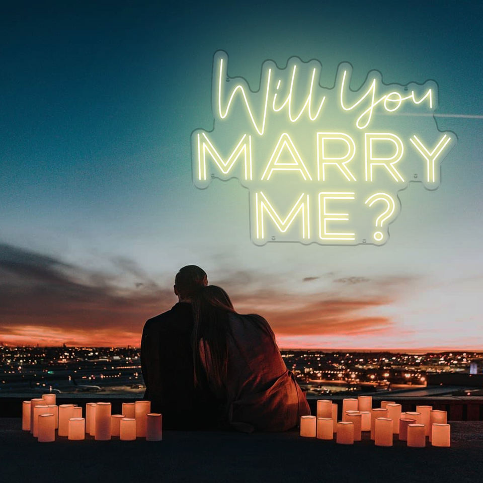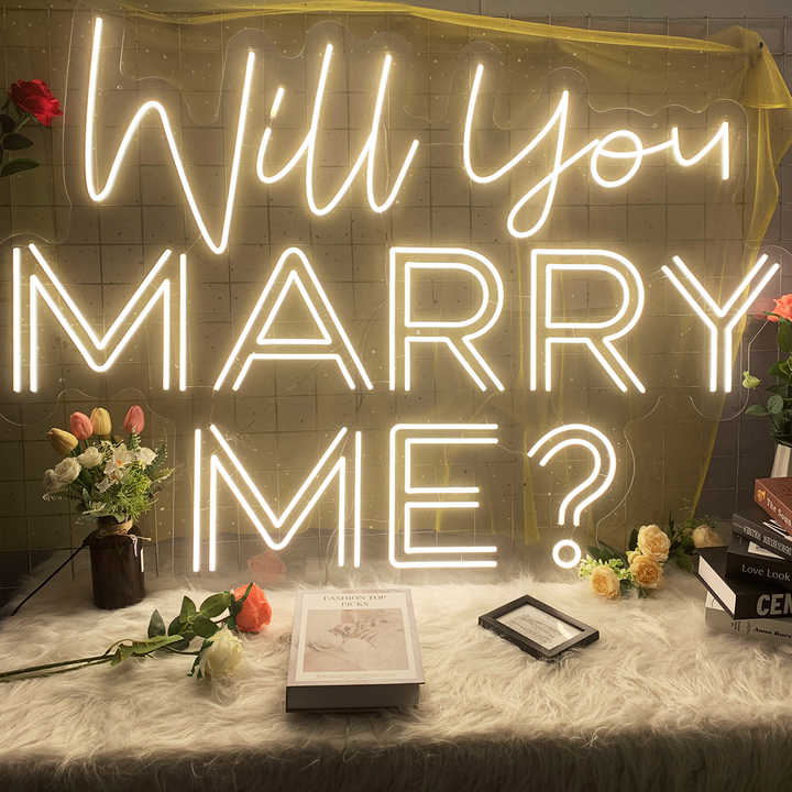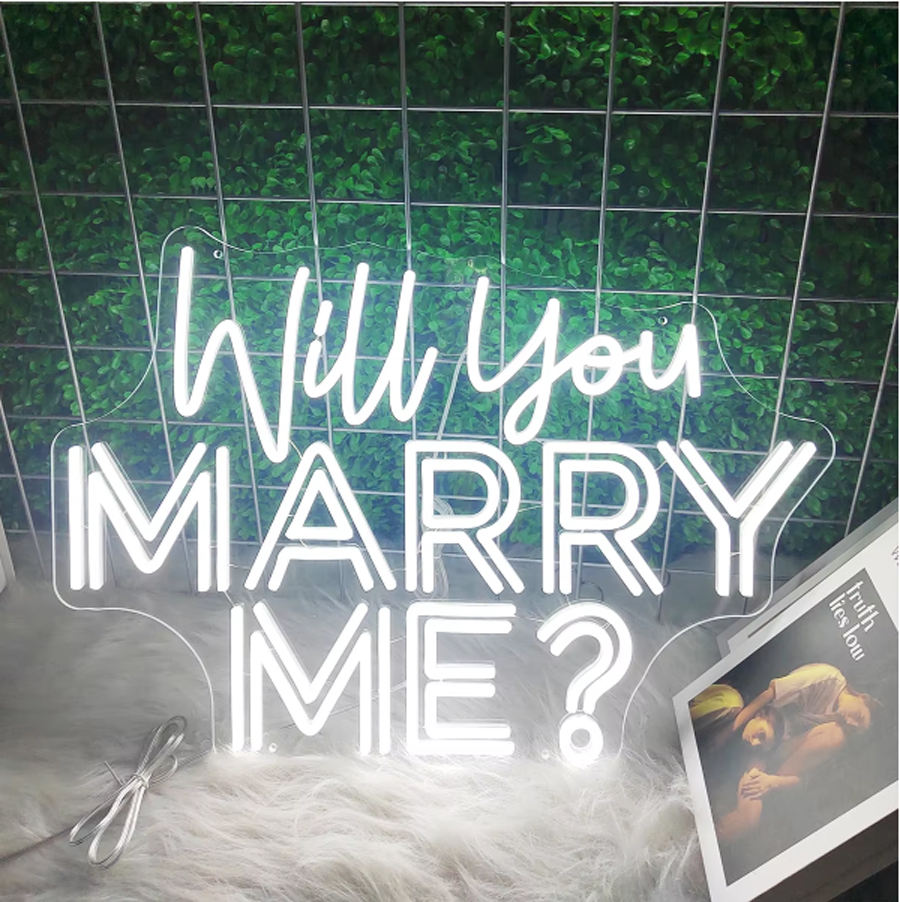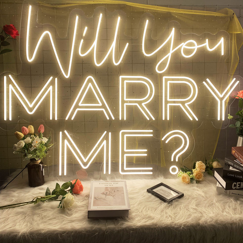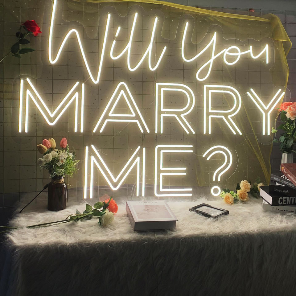 Insegna Neon LED Personalizzata 'Mi Vuoi Sposare' Logo Luminoso per Matrimonio Decorazione Soggiorno e Ufficio/Casa Arredo Pubblicitario