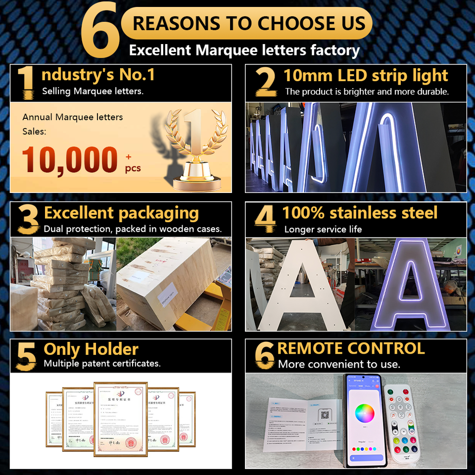 Lettere e Numeri Luminosi LED RGB Personalizzati in Metallo a Specchio per Insegne Aziendali, Matrimoni, Palcoscenici, Discoteche, Eventi VIP e Decorazioni per Feste