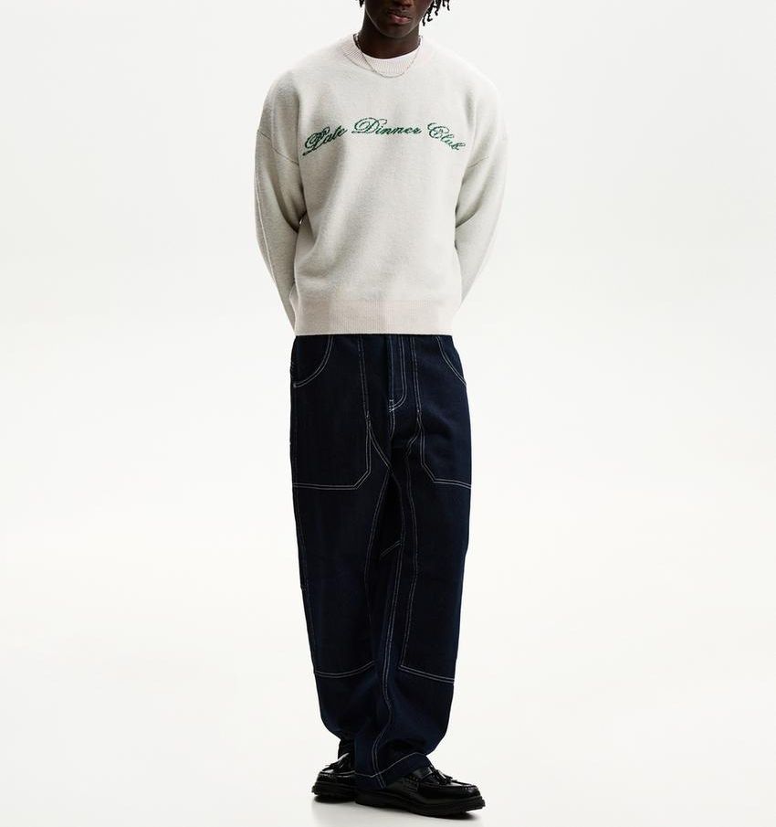 Custom LOGO Brand Name Jacquard Letter Design OverSize Knit Pullover 100% Cotton Casual Style Knit Sweater for Men