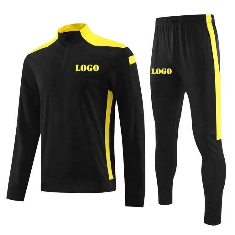 Tuta da Calcio Personalizzata con LOGO, Ultima Collezione, Giacca e Pantaloni da Uomo, Nero e Giallo, Tuta da Allenamento Economica JM
