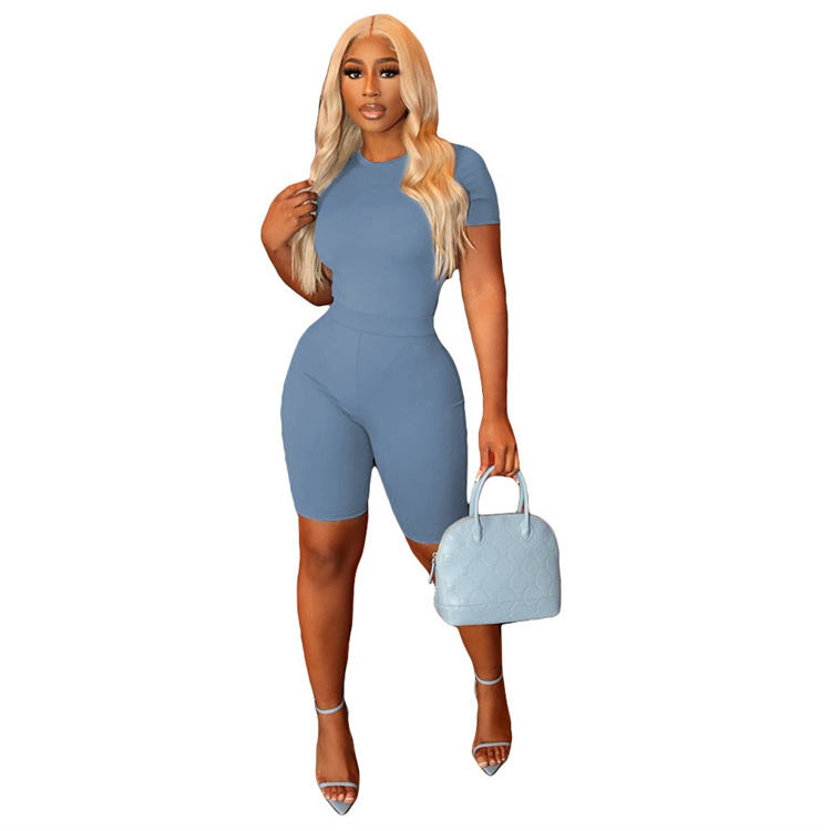 LOGO personalizzato vestito estivo tinta unita donna Jogging Short Set due pezzi party Yoga Short Set Outfit aderente due pezzi