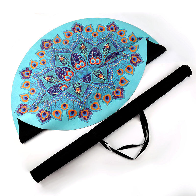 Tappetino Yoga Rotondo in Gomma Naturale con Etichetta Personalizzata, in Camoscio per Meditazione