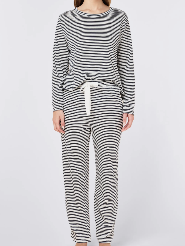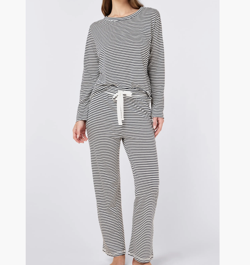 Set Pigiama Donna Due Pezzi Personalizzato, Abbigliamento da Notte Lungo, Completo Loungewear, Set Pigiama a Righe in Cotone